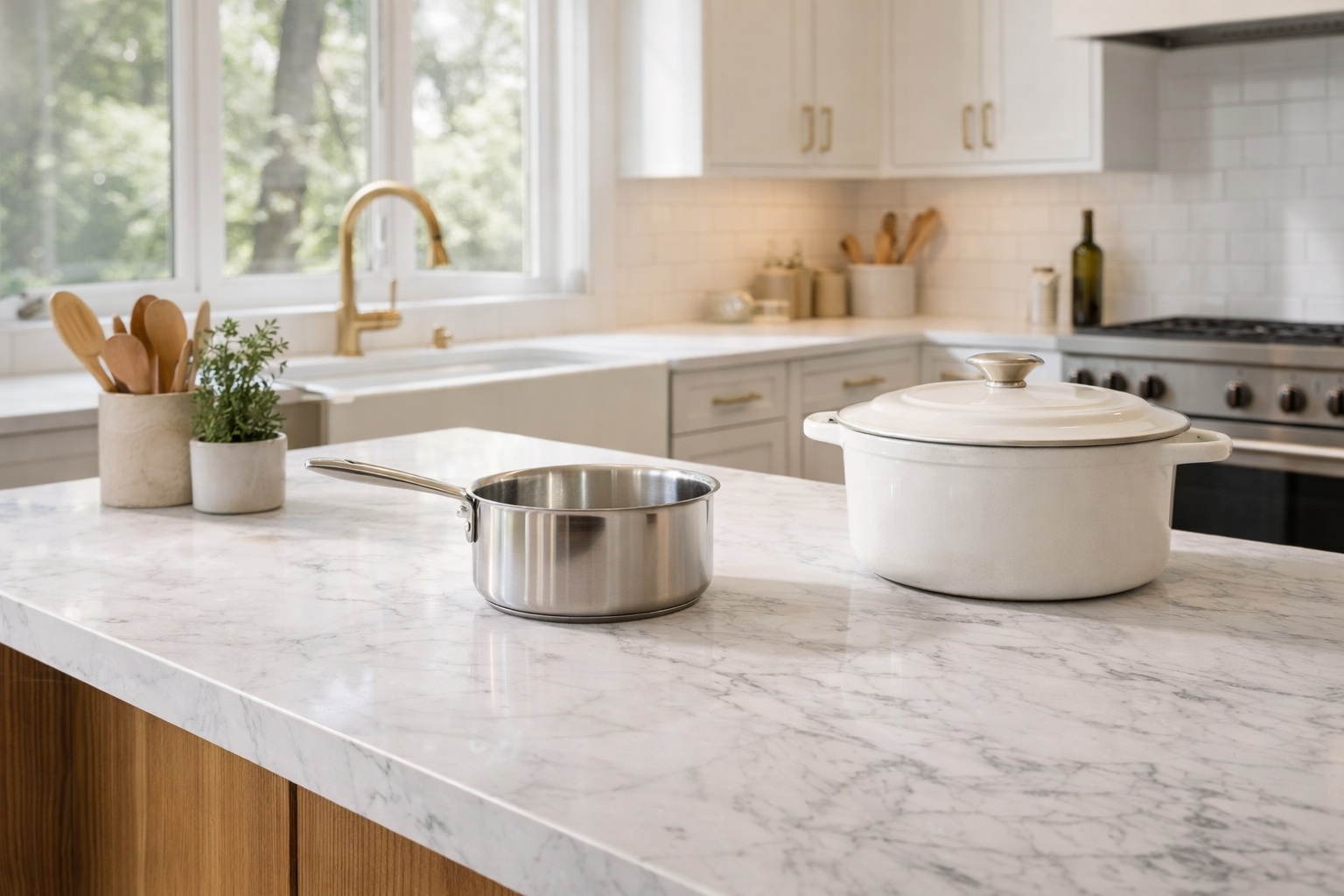 Quartz surfaces are a popular option for heat-resistant kitchen countertops thanks to their engineered strength and consistency. While trivets are still recommended, high-quality quartz offers excellent resistance to heat and daily wear. Its low maintenance and modern appearance make it ideal for Texas kitchens focused on performance and style.